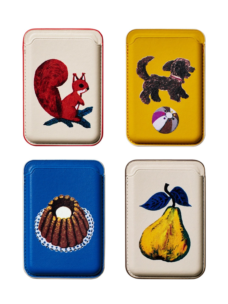 "Forest Pocket" Magnetic Leather Card Holder with Retro Illustration Print