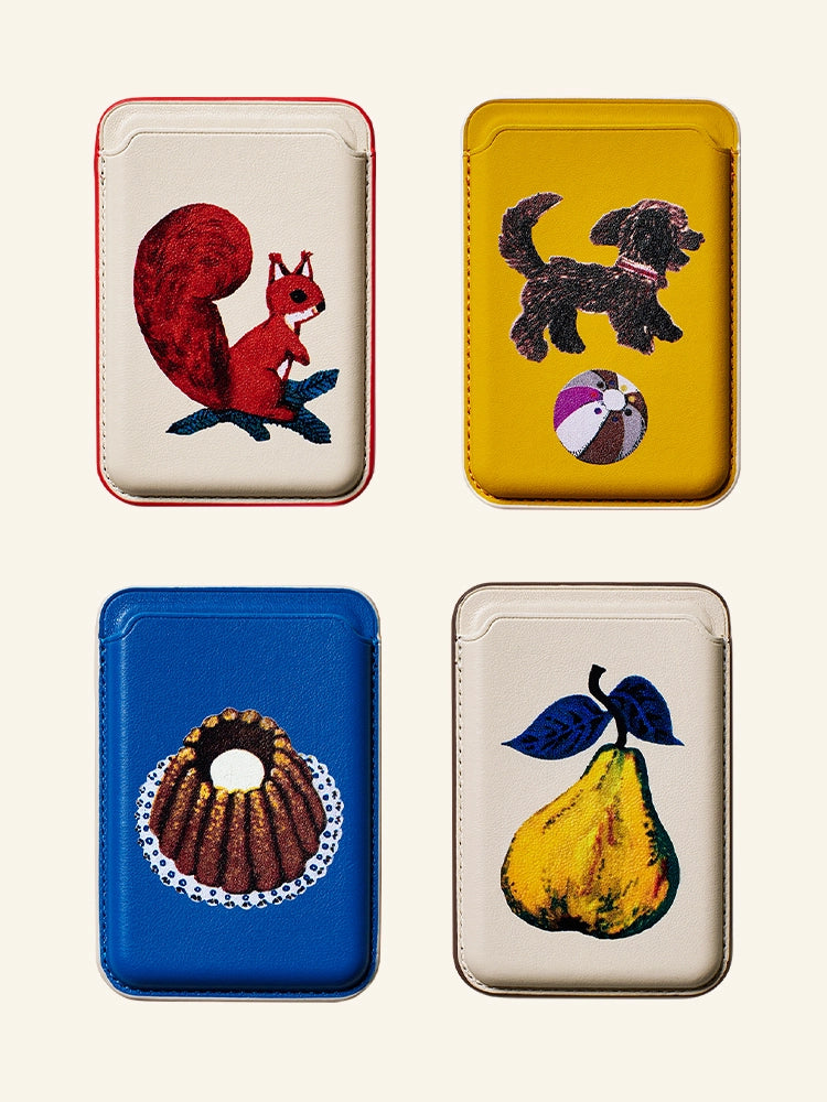 - The card holder's design resembles little elves that have jumped out of a fairytale picture book, guarding essential daily cards. The upgraded magnetic closure makes it a perfect, comforting storage solution, whether placed in a canvas bag or attached to a phone case.