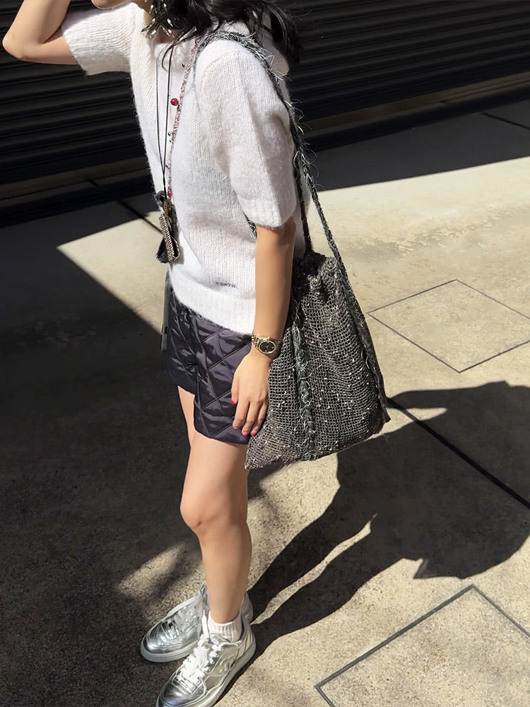 Sorbet Delicious Waffle Shiny Drawstring Mesh Tote Bag